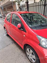 vendesi Toyota Aygo rosso Ferrari in buone condizioni 170.000 km anno 2008 5 porte aria condizionata autoradio chiusura centralizzata con telecomando bollo pagato fino a Dicembre 2026 gomme nuove prezzo leggermente trattabile