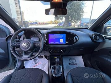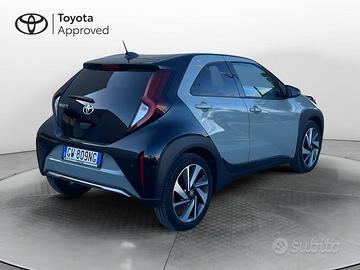 2 Freni a disco (anteriori autoventilanti) - 6 airbag SRS - ABS + Ripartitore elettronico della frenata (EBD) + Assistenza alla frenata (BA) - Abitacolo indeformabile ad alta protezione - Alette parasole con specchietto - Alzacristalli elettrici anteriori - Assistenza alla partenza in salita (HAC) - Avvisatore acustico cinture di sicurezza anteriori e posteriori - Battitacco specifico con logo Aygo X - Bocchette dell'aria condizionata nere lucide - Cambio automatico - Cassetto portaoggetti lato passeggero richiudibile - Cerchi in lega da 18" neri lavorati con pneumatici 175/60/ R18 - Chiamata di emergenza E-call - Chiusura centralizzata con radiocomando - Cinture di sicurezza anteriori a 3 punti con pretensionatore e limitatore di forza - Climatizzatore automatico - Comandi multifunzione al volante - Connect Pack - Contagiri - Controllo elettronico della stabilità (VSC) e della trazione (TRC) - Dettaglio del volante in tinta con la carrozzeria anodizzato - Disattivatore airbag frontale lato passeggero - Display multi-informazioni con schermo a colori da 4,2" - Fari a LED - Garanzia 3 anni o 100.000 km - Illuminazione interna Ambient - Intelligent Adaptive Cruise Control (i-ACC) - Cruise Control Adattivo Intelligente - Interni in pelle e tessuto con finiture sedili anteriori in tinta con la carrozzeria - Kit riparazione pneumatici - Luce vano bagagli - Luci d'emergenza attive - Luci posteriori a LED "Light Guide" - Maniglie in tinta con la carrozzeria - Maniglie interne cromate - Modanatura del cambio e portabicchieri nera lucida e dettaglio anodizzato in tinta con la carroz. - Modanatura display centrale anodizzata in tinta con la carrozzeria - Palette del cambio al volante - Piantone dello sterzo collassabile - Retrovisori esterni regolabili elettricamente e riscaldabili - Rifinitura paraurti anteriore e posteriore Argento - Rilevamento presenza passeggeri sedili post. RSRS (sensore abbandono bambini) - Schiena