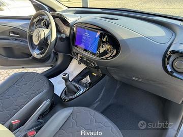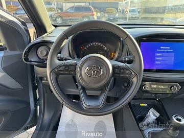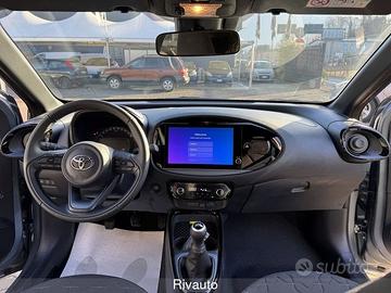 2 Freni a disco (anteriori autoventilanti) - 6 airbag SRS - ABS + Ripartitore elettronico della frenata (EBD) + Assistenza alla frenata (BA) - Abitacolo indeformabile ad alta protezione - Alette parasole con specchietto - Alzacristalli elettrici anteriori - Assistenza alla partenza in salita (HAC) - Avvisatore acustico cinture di sicurezza anteriori e posteriori - Battitacco specifico con logo Aygo X - Bocchette dell'aria condizionata nere lucide - Cambio manuale a 5 marce - Cassetto portaoggetti lato passeggero richiudibile - Cerchi in lega da 18" neri lavorati con pneumatici 175/60/ R18 - Chiamata di emergenza E-call - Chiusura centralizzata con radiocomando - Cinture di sicurezza anteriori a 3 punti con pretensionatore e limitatore di forza - Climatizzatore automatico - Comandi multifunzione al volante - Connect Pack - Contagiri - Controllo elettronico della stabilità (VSC) e della trazione (TRC) - Dettaglio del volante in tinta con la carrozzeria
