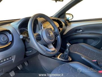 2 airbag SRS frontali - 2 airbag SRS laterali - 2 freni a disco (anteriori autoventilati) - ABS - Abitacolo indeformabile ad alta protezione - Airbag SRS a tendina anteriori - Airbag SRS a tendina posteriori - Alette parasole con specchietto - Alzacristalli elettrici anteriori - Assistenza alla frenata (BA) - Assistenza alla partenza in salita (HAC) - Auto High Beam (AHB) - Abbaglianti Automatici - Avvisatore acustico cinture di sicurezza anteriori e posteriori - Battitacco specifico con logo Aygo X - Bocchette dell'aria condizionata nere lucide