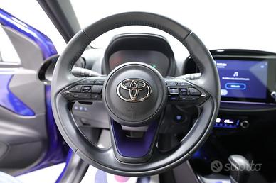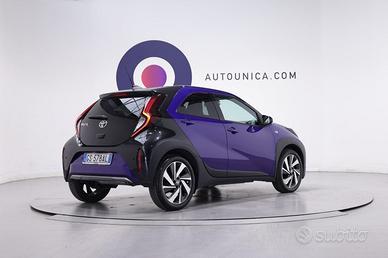 TOYOTA Aygo X 1.0 VVT-I 72 CV 5 PORTE LOUNGE S-CVT automatica, immatricolata nel 2024 rappresenta la sintesi perfetta tra agilità urbana e tecnologia avanzata, distinguendosi per il design audace da crossover compatto e un equipaggiamento di altissimo livello. Questa vettura, ideale anche per i neopatentati, è dotata di un fluido cambio automatico con pratiche leve al volante per una guida dinamica e confortevole in ogni situazione. La sicurezza è garantita da un pacchetto completo di sistemi di assistenza, tra cui la frenata d'emergenza assistita, il controllo elettronico della corsia, il riconoscimento dei segnali stradali, il sistema di avviso di distanza e l'Adaptive Cruise Control, completati da ABS, ESP, controllo trazione e un sistema completo di airbag frontali, laterali e per la testa. L'allestimento Lounge offre un'esperienza di bordo superiore grazie al climatizzatore a controllo automatico, al sistema di navigazione integrato su uno moderno schermo touch screen e alla connettività tot