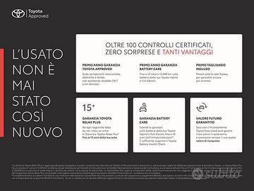 DEK:[10883161] PREZZO ESCLUSO TRAPASSO, AUTO SANIFICATA TUA CON PIANO DI ACQUISTO CON ACCONTO MINIMO E RATE CONTENUTE Toyota Approved ti consente di vivere l’esperienza di acquisto di un'auto Toyota ibrida usata con la stessa piacevole e rassicurante sensazione di acquistare una vettura nuova. Ecco perché Toyota ha pensato a Toyota Approved, il nuovo programma di certificazione delle auto usate Toyota per darti la massima tranquillità, sempre. -Garanzia Toyota Approved con assistenza stradale 24/7 e chilometraggio illimitato -Programma di finanziamento dedicato -Garanzia Toyota Relax fino a 15 anni -Hybrid Health Check -Oltre 100 controlli tecnici certificati -Pacchetti di manutenzione dedicati Toyota Financial Services ti permette di usufruire per le vetture Toyota Approved del programma di finanziamento valore usato, che offre il Valore di riscatto finale sull’usato, per darti ancora più affidabilità e sicurezza nella scelta di una vettura Toyota Approved, All’interno puoi includere in anticipo i tagliandi nel programma di finanziamento valore usato, così da avere la garanzia del Post Vendita Toyota a tua disposizione e i pacchetti assicurativi: Furto/Incendio Eventi naturali/Atti vandalici/Eventi sociopolitici Cristalli Collisione o minicollisione Kasko o mini kasko La dotazione tecnica e gli optional potrebbero in alcuni casi differire dall'effettivo equipaggiamento della vettura. La Spotornocar S.p.a. declina ogni responsabilità per eventuali involontarie incongruenze, che non rappresentano un impegno contrattuali I prezzi riportati per l'usato sono passaggio di proprietà escluso; per il nuovo IPT esclusa