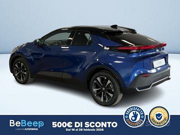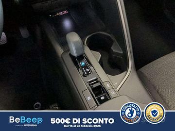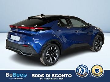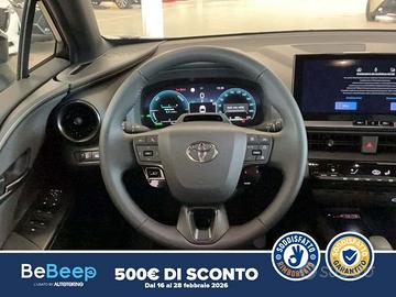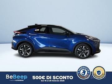 La vettura è completa nella dotazione optional di 3 anni o 100.000 km|5 Anni o 100.000 Km sulle componenti ibride|Abbaglianti automatici (AHB)|Aggiornamenti (OTA)|Airbag SRS anteriori frontali|Airbag SRS anteriori laterali|Airbag SRS centrale|Airbag SRS posteriori laterali|Alzacristalli elettrici anteriori e posteriori|Antenna Shark|Assistenza all'uscita sicura (SEA)|Assistenza alla sterzata di emergenza (ESA)|Assistenza alle ripartenze in salita (HAC)|Assistenza proattiva alla guida (PDA)|Avviso di cambio corsia con controllo dello sterzo (LDA con SC)|Avviso di rilevamento della stanchezza (DAA)|BA|Battitacco in alluminio dedicato Toyota c-hr|Cerchi in lega da 18"" con pneumatici 225/55 R18|Cinture di sicurezza anteriori regolabili in altezza con pretensionatore e limitatore di forza|Climatizzatore