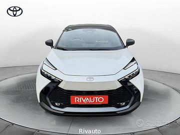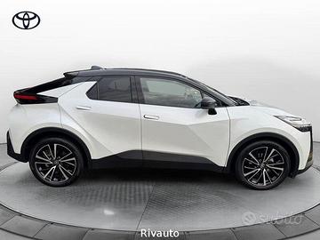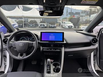 ABS + EBD + BA - Airbag SRS anteriori - Airbag SRS laterali (Anteriori/Posteriori) - Alzacristalli elettrici anteriori e posteriori - Antenna "Shark" - Assistenza alla partenza in salita (HAC) - Battitacco in alluminio dedicato Toyota C-HR - Cambio a variazione continua (E-CVT) - Cerchi in lega da 19" con pneumatici 225/50 R19 - Cerchi in lega da 19" grigio opaco con pneumatici 225/50 R19 - Cinture di sicurezza anteriori regolabili in altezza con pretensionatore e limitatore di forza - Climatizzatore automatico bi-zona - Comandi audio e Bluetooth al volante - Digital cockpit con schermo a colori da 12,3" - Dispositivo Follow Me Home - Fari anteriori prisma LED con abbaglianti automatici (AHB) - Fari fendinebbia a LED - Fari posteriori a LED con logo Toyota C-HR - Freno di stazionamento elettrico - Garanzia 3 anni o 100.000 km - Garanzia 5 anni o 100.000 km sulle componenti ibride - Illuminazione interna multi-ambient light (64 colori) - Interni suede e pelle sintetica