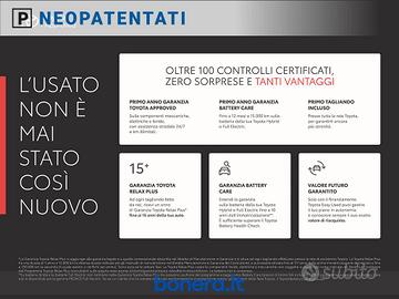 Il programma TOYOTA APPROVED prevede: - Tutte le auto ibride certificate includono la garanzia di 12 mesi, con copertura completa anche per le componenti ibride, un'assistenza stradale 24/7 e chilometraggio illimitato - Toyota Financial Services ti permette di usufruire per le vetture Toyota Approved del programma di finanziamento Re-Drive, l’unico che offre il Valore Futuro Garantito sull’usato - Tutte le auto ibride approvate Toyota Approved possono usufruire della Garanzia Toyota Relax fino a 10 anni dalla prima immatricolazione, effettuando la regolare manutenzione presso i nostri Centri Assistenza Autorizzati - Tutte le auto ibride approvate Toyota Approved comprendono l’Hybrid Health Check, che prevede l'estensione di un anno o 15.000 km della copertura della batteria ibrida, rinnovabile fino a 10 anni** dalla data di immatricolazione. - Prima della messa in vendita, tutte le auto Toyota Approved vengono esaminate da tecnici qualificati Toyota e sottoposte a una serie completa di oltre 100 controlli tecnici - Per darti ancora più affidabilità e sicurezza nella scelta di una vettura Toyota Approved, puoi includere in anticipo i tagliandi nel programma di finanziamento Re-Drive, così da avere la garanzia del Post Vendita Toyota a tua disposizione. Prezzo esposto escluso di passaggio di proprietà, salvo diverse indicazioni o promozioni in essere. La dotazione tecnica e gli optional potrebbero in alcuni casi differire dall'effettivo equipaggiamento della vettura, a causa della non uniformità dei dati pubblicati dai vari portali. Ci scusiamo anticipatamente per l'inconveniente e Vi invitiamo a verificare con noi i dettagli dello specifico veicolo. Bonera S.p.A. declina ogni responsabilità per eventuali involontarie...[Cod: 1129792-802] [Veicolo: 67453]