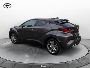 4 freni a disco (anteriori autoventilanti) - 7 airbag SRS - ABS + EBD + BA - Alzacristalli elettrici anteriori e posteriori - Antenna "Shark" - Assistenza alla partenza in salita (HAC) - Battitacco dedicato C-HR - Cambio a variazione continua (E-CVT) - Cerchi in lega da 18" con pneumatici 225/50 R18 - Cinture di sicurezza anteriori regolabili in altezza con pretensionatore e limitatore di forza - Climatizzatore automatico bi-zona - Comandi audio e Bluetooth al volante - Computer di bordo multifunzione - Controllo della trazione (TRC) - Controllo elettronico della stabilità (VSC+) - Display multi-informazioni TFT a colori da 4,2" - Dispositivo Follow Me Home - Fari fendinebbia a Led - Fari posteriori a Led - Freno di stazionamento elettronico - Garanzia 3 anni o 100.000 km - Garanzia 5 anni o 100.000 km sulle componenti ibride - Illuminazione ambiente interno - Interruttore disinserimento airbag frontale lato passeggero - Kit riparazione pneumatici - Lane Change Assist (LCA) - Sistema di assistenza al mantenimento della corsia - Luci diurne a LED - Nanoe ION Generator - Retrovisori esterni ripiegabili elettricamente e riscaldabili - Rivestimento dei sedili in pelle Black&Brown - Sedile guidatore regolabile elettricamente - Sedile guidatore regolabile in altezza e con supporto lombare regolabile elettricamente - Sedile passeggero regolabile in altezza - Sedili anteriori riscaldabili - Sedili posteriori abbattibili 40/60 - Sensore crepuscolare - Sensore pioggia - Sensori di parcheggio ant. e post. con funzione ICS anticollisione - Sistema acustico di avviso presenza veicolo (AVAS) - Sistema di ritenuta ISOFIX - Sistema multimediale Toyota Smart Connect - Smart Entry & Push Start - Specchietto retrovisore interno elettrocromatico - Tech Pack - Telecamera posteriore di assistenza al parcheggio - Toyota Safety Sense -