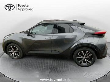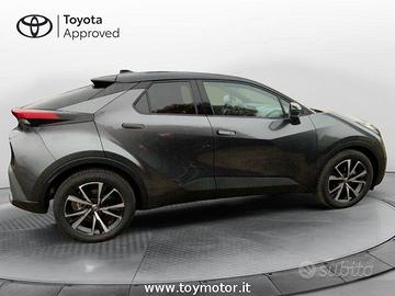 ABS + EBD + BA - Airbag SRS anteriori - Airbag SRS laterali (Anteriori/Posteriori) - Alzacristalli elettrici anteriori e posteriori - Antenna "Shark" - Assistenza alla partenza in salita (HAC) - Battitacco in alluminio dedicato Toyota C-HR - Cambio a variazione continua (E-CVT) - Cerchi in lega da 18" con pneumatici 225/55 R18 - Cerchi in lega da 18" neri lavorati con pneumatici 225/55 R18 - Cinture di sicurezza anteriori regolabili in altezza con pretensionatore e limitatore di forza - Climatizzatore automatico bi-zona - Comandi audio e Bluetooth al volante - Digital cockpit con schermo a colori da 12,3" - Dispositivo Follow Me Home - Fari anteriori prisma LED con abb