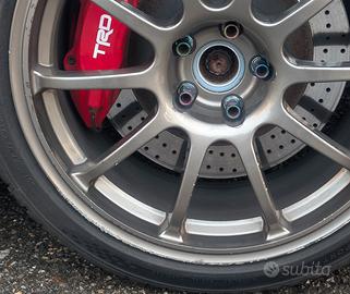 -Impianto frenante anteriore maggiorato originale TRD con dischi da 340 forati, tubi in treccia