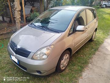 Toyota Corolla Verso colore Champagne 2003, benzina, ottimo stato meccanica, alcuni graffi lato destro posteriore, usata solo in città. Gomme quattro stagioni nuove sostituite novembre 2024, batteria sostituita febbraio 2024, revisionata 2025, targhe nuove, tre chiavi. Aria condizionata, radio/cd e airbag frontali. Adatta neopatentati.