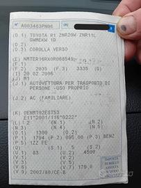 Vendo toyota corolla verso carrozzeria appena rifatta , benzina , cambio e frizione nuovi , gomme estive con cerchinin lega e invernali con cerchi in ferro, bollo pagato fino a gennaio