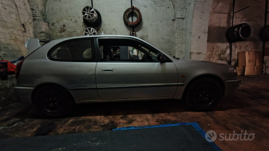 Vendo Toyota Corolla E110 1.6l 110cv, assetto eibach, dischi, pasticche, filtro a pannello sportivo k&n, appena tagliandata, tenuta in garage, km 114.000, anno 1998, carburante benzina, incluso 4 cerchi originali, monta 4 cerchi ATS r14. Aria condizionata perfettamente funzionante, full optional.