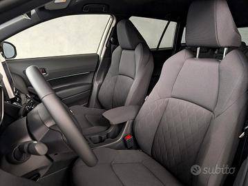 Illuminazione interna Ambient, Sedili anteriori riscaldabili, Volante in pelle, regolabile in altezza e profondità, Bracciolo centrale con funzione stivaggio scorrevole, Volante riscaldabile, Schienale posteriore abbattibile 60/40, Supporto lombare lato guida, Climatizzatore automatico bi-zona, Push start system, Aggiornamenti (OTA), FWD - trazione anteriore, Protezione posteriore sedili seconda fila, Smart entry, Garanzia 3 anni o 100.000 km, Garanzia 5 anni o 100.000 km sulle componenti ibride, Kit riparazione pneumatici, Battitacco Hybrid anteriore e posteriore, Finiture cruscotto in materiale soft touch, Display multi-informazioni con strumentazione digitare da 12.3", Chiusura centralizzata con radiocomando, Sistema audio a 6 altoparlanti, Sistema multimediale Toyota smart connect, Comandi multifunzione al volante, Wireless Charger - Caricabatterie a induzione per smartphone, Cerchi in lega da 18" con pneumatici 225/50 R18, Ai