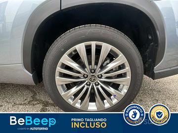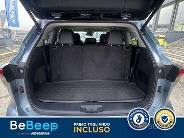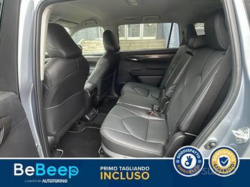 La vettura è completa nella dotazione optional di 3 anni o 100.000 km, 4 freni a disco, 5 Anni o 100.000 Km sulle componenti ibride, 7 airbag SRS, Alzacristalli elettrici anteriori e posteriori, Assistenza alla partenza in salita (HAC), Auto High Beam (AHB) - Abbaglianti Automatici, BA, Barre longitunali - roofrails, Blind Spot Monitor (BSM) - Sistema di controllo angoli ciechi, Cerchi in lega da 20"" con pneumatici 235/55 R20, Cinture di sicurezza anteriori regolabili in altezza con pretensionatore e limitatore di forza, Climatizzatore anteriore automatico bi-zona, Climatizzatore posteriore automatico, Comandi audio e bluetooth al volante, Computer Di Bordo Multifunzione, Configurazione 7 posti, Controllo della trazione (TRC), Controllo elettronico della stabilità (VSC+), E-CVT, EBD, Emergency