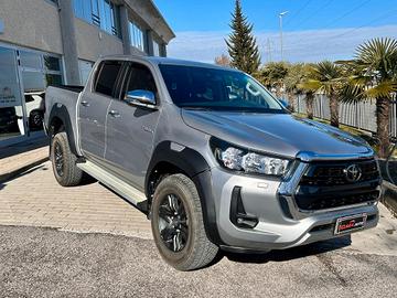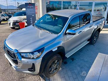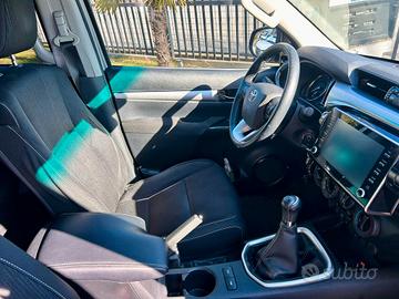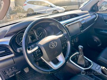 Climatizzatore Manuale, Sedili anteriori riscaldabili e regolabili manualmente, Sedili posteriori con seduta sollevabile e sdoppiabile 60/40, Volante e pomello del cambio in pelle, Volante regolabile in altezza e in profondità, Cassetto portaoggetti refrigerato, Cassetto portaoggetti (con serratura), Consolle centrale con inserti cromati, 4X4, Chiusura sponda cassone con serratura, Ganci cassone interni, Marce ridotte e Trazione integrale inseribili mediante selettore (4WD Easy Switch), Paraspruzzi anteriori, Paraspruzzi posteriori, Poggiatesta anteriori, Omologazione autocarro, Toyota Relax fino a 10 anni o 250.000 km, Paraurti posteriore nero con angoli cromati, Pedane laterali alluminio, Allarme antifurto, Immobilizer (blocco elettronico motore), Chiusura centralizzata con radiocomando (serratura meccanica solo su portiera lato conducente), Sistema multimediale Toyota Touch, Comandi multifunzione al volante, Computer di bordo con display multi-informazioni TFT 4,2" a colori (animazione specifica), Cerchi in lega da 17" con pneumatici 265/65 R17 All-Terrain, Stop & Start (Eco Pack), Bordo inferiore dei finestrini cromato, Paraurti anteriore in tinta con la carrozzeria, Retrovisori esterni elettrici, riscaldati e ripiegabili con indicatore di direzione integrato - cromati, Griglia anteriore con cornice cromata, Maniglie Cromate, Tergicristallo Antighiaccio, Lavafari, Fari fendinebbia LED, Light Control System (dispositivo Follow me home), Fari anteriori alogeni con luci diurne, Poggiatesta posteriori, ABS, EBD, 2 airbag SRS frontali, 2 airbag SRS laterali anteriori,
