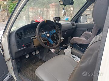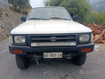 vendo per inutilizzo, splendido modello Toyota Hilux del '94 2.4 D aspirato no turbo, ma predisposta per la turbina, motore infinito ha solo 280 Mila km, consumi irrisori, distribuzione appena sostituita, radiatore sostituito e maggiorato, gancio traino omologato a libretto, 1.90 cassone portata 17 quintali, appena riverniciata dal carrozziere, cerchi neri, scarico laterale, panca posteriore per 2-3 passeggeri, collaudo fatto a febbraio valido per due anni, esente bollo, passaggio ridotto, veicolo che si presta anche ad essere usato da bivacco, non vero camper ma molto adattabile, non regalo modello quasi introvabile, batteria appena sostituita con garanzia 1 anno, sedili originali rifatti a nuovo euro 9000
