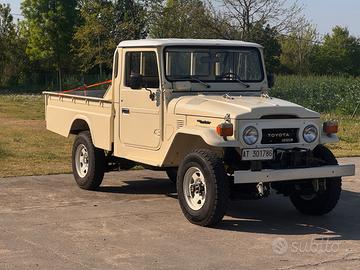 TOYOTA LAND CRUISER HJ45 SCOCCATO SABBIATO TELAIO E RIVERNICIATO A POLVERE GANCIO TRAINO CASSONE NUOVO GOMME A LIBRETTO 235/85 16,255/85 16 E 7.50 16 MOTORE DIESEL 6 CILINDRI 3600 CC IMPIANTO 12V VERRICELLO MECCANICO ORIGINALE 3 CHIAVI ORIGINALE ACCENSIONE