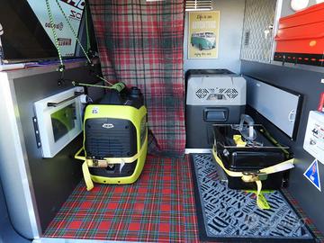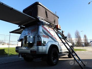 ALLESTIMENTO CAMPER: 2 fari fendinebbia Siem da rally, 4 fari di profondità Hella sul tetto, 2 fari di profondità TOYOTA incorporati nel paraurti anteriore, Ganci di traino anteriori supplementari con fune di emergenza, Pedane di accesso artigianali con incorporati serbatoi per acque bianche da complessivi 170 litri, Volante a calice Toyota racing, Antiturbo ai finestrini, Sedili riscaldabili, Bussola analogica militare, Stazione meteo analogica militare, Orologio e stazione meteo digitale, Porta tablet lato passeggero, Radio dab stereo e CD nuova, CB Midlands ALAN 48 Special, Completo utensili fuoristrada (accetta – seghetto – coltello – machete – falcetta – vanga – piccone), Luce leggi-mappe professionale da rally, Torcia a led di emergenza brandeggiabile, Torcia giro testa a led, Illuminazione supplementare abitacolo a led, Compressore gonfiaggio ruote alloggiato nel cassettino sotto il sedile del passeggero, WC nautico con serbatoio deposito acque nere alloggiato tra i longheroni centrali del telaio vettura (capienza litri 75), Porta rotolo carta igienica, Spazzolino igienico per WC, Specchio di cortesia, Tenda WC privacy, Frigorifero con ghiacciaia elettrico, Pannellatura termica in multistrato marino, Fornetto a micro onde, Cucina a due fuochi elettrica montata sul retro del portellone, Lavello con rubinetto acqua incorporato di tipo nautico montato sul retro del portellone, Luce a led di lavoro per cucina e lavello, Cerniere portellone potenziate per utilizzo gravoso, Doccia esterna con pompa elettrica a riavvolgimento...[Cod: 1092076-800]