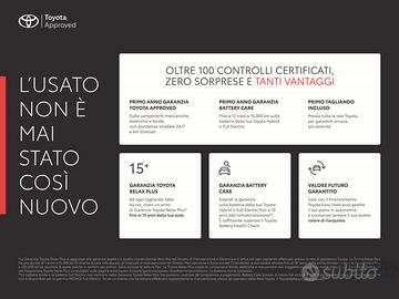 DEK:[9674973] VETTURA TOYOTA APPROVED, TAGLIANDI CERTIFICATI PRESSO CONCESSIONARIE TOYOTA, VISIBILE PRESSO LA SEDE DI VITERBO Prezzo di Listino/Contanti : €18.900 - passaggio escluso Prezzo con Finanziamento : €18.900 Garanzia Toyota Approved con assistenza stradale 24/7 e chilometraggio illimitato. Programma di finanziamento Toyota Easy Used. L'unico che ti offre il Valore Futuro Garantito sull'usato e ti permette di includere tagliandi e pacchetti assicurativi nella rata. Garanzia Toyota Relax Plus fino a 15 anni dalla prima immatricolazione, effettuando di anno in anno la regolare manutenzione presso la nostra rete. Tagliandi certificati Possibilità di finanziamento personalizzato con rata fissa e costante anche con copertura assicurativa su: FURTO, INCENDIO, RAPINA, EVENTI NATURALI(GRANDINE), ATTI VANDALICI, COLLISIONE CON VEICOLI NON ASSICURATI E CRISTALLI