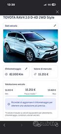 Toyota RAV4 2.0 D-4D Style 2WD Km 82.000 Anno 2016 Tagliati: Tutti Certificati Potenza 143 CV Emissioni CO2 124 g/km Colore Bianco Perla Interni Misto Pelle Sicurezza • Abs Con Sistema Di Ripartizione Della Frenata • Controllo Della Trazione (Trc) • Controllo Della Stabilita' (Vsc) • Luci Anteriori A Led • Luci Diurne • Cruise Control • Airbags • Sensore Pioggia • Sistema Di Fissaggio Isofix • Sensori Di Parcheggio Posteriori Audio & Multimedia • Bluetooth® • Porta Ubs Esterno • Barre Longitudinali • Vetri Oscurati Comfort • Alzacristalli Elettrici • Retrovisori Regolabili Elettronicamente • Servosterzo Elettrico • Sedili Posteriori Ribaltabili 60:40 Accessori: ⁃ Fari a Led, ⁃ Telecamera posteriore ⁃ Sedili anteriori riscaldabili ⁃ Sedile guidatore regolabile elettricamente ⁃ Barre longitudinali tetto ⁃ Portellone posteriore elettrico ⁃ Climatizzatore Bi-zona ⁃ Cerchi in lega 18