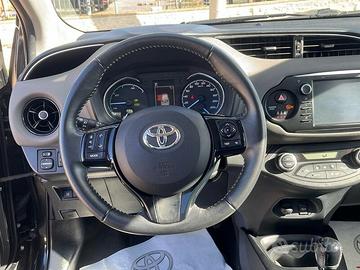 7 airbag SRS - ABS + Ripartitore elettronico della frenata (EBD) + Assistenza alla frenata (BA) - Abitacolo indeformabile ad alta protezione - Alzacristalli elettrici anteriori - Alzacristalli elettrici posteriori - Assistenza alla partenza in salita (HAC) - Avvisatore acustico cinture di sicurezza anteriori e posteriori - Avvisatore acustico luci accese - Barre anti-intrusione nelle portiere - Cambio a variazione continua (E-CVT) - Cerchi in acciaio da 15" con pneumatici 175/65 R15 - Chiusura centralizzata con radiocomando - Cinture di sicurezza anteriori con pretensionatore e limitatore di forza - Climatizzatore automatico bi-zona - Comandi multifunzione al volante (audio e Bluetooth) - Computer di bordo multifunzione - Controllo elettronico della stabilità (VSC) e della trazione (TRC) - Disattivazione airbag frontale lato passeggero - Display multi-informazioni a colori da 4,2" - Dispositivo Follow Me Home - Energy monitor - Fari anteriori Projector - Fari fendinebbia con cornice cromata e black - Finiture interne in materiale "Soft Touch" - Finiture laterali black - Garanzia 3 anni o 100.000 km - Garanzia 5 anni o 100.000 km sulle componenti ibride - Griglia radiatore verniciata black - Immobilizer (blocco elettronico motore) - Interni in tessuto - Kit riparazione pneumatici - LED Pack - Luce vano bagagli - Luci d'emergenza attive - Maniglie in tinta con la carrozzeria - Piantone dello sterzo collassabile - Poggiatesta anteriori attivi (sistema WIL) - Protezione vano di carico - Pulsante di avviamento "Push Start" - Retrovisori esterni regolabili elettricamente, riscaldati e in tinta - Riconoscimento segnaletica stradale (TSR - Traffic Sign Recognition) - Schienale posteriore abbattibile 60/40 - Sedile guidatore regolabile in altezza - Selezione modalità di guida (EV mode/ECO mode) - Sensore pioggia - Sistema di monitoraggio pressione pneumatici - Sistema di ritenuta ISOFIX - Sistema multimediale Toyota Touc