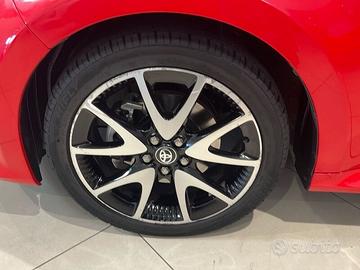 7 airbag SRS - ABS + Ripartitore elettronico della forza frenante (EBD) + Assistenza alla frenata (BA) - Alzacristalli elettrici anteriori - Alzacristalli elettrici posteriori - Assistenza alla partenza in salita (HAC) - Avvisatore acustico cinture di sicurezza anteriori e posteriori - Battitacco - Bracciolo anteriore con vano portaoggetti - Cambio a variazione continua (E-CVT) - Cassetto portaoggetti - Cerchi in lega da 17" con pneumatici 205/45 R17 - Chiusura centralizzata con radiocomando - Cinture di sicurezza anteriori con pretensionatore e limitatore di forza - Climatizzatore automatico bi-zona - Comandi multifunzione al volante - Computer di bordo multifunzione - Controllo elettronico della stabilità (VSC) + Controllo della trazione (TRC) - Disattivazione airbag frontale lato passeggero - Display multi-informazioni con schermo da 4,2" e tachimetro digitale binhocular - Display touchscreen da 8" - Fari a LED - Fari fendinebbia a LED - Finiture interne in materiale "Soft Touch" - Freno di stazionamento elettrico (EPB) - Garanzia 3 anni o 100.000 km - Garanzia 5 anni o 100.000 km sulle componenti ibride - Head-up Display - Illuminazione ambiente interno - Immobilizer (blocco elettronico motore) - Intelligent Adaptive Cruise Control (i-ACC) - Cruise Control Adattivo Full Range con Stop&Go - Interni neri in tessuto con inserti in pelle - Kit riparazione pneumatici - Luci d'emergenza attive - Luci posteriori a LED "Light Guide" - Maniglie in tinta con la carrozzeria - Parking and Lane Change Assist (PLCA) - Sistema di assistenza al parcheggio e cambio corsia - Piantone dello sterzo collassabile - Pomello del cambio rivestito in pelle - Protezione vano di carico - Pulsante di avviamento "Push Start" - Retrovisori esterni regolabili e ripiegabili elettricamente, riscaldati e black - Schienale posteriore abbattibile 60/40 - Sedile guidatore regolabile in altezza - Sedile passeggero regolabile in altezza - Senso
