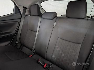 Climatizzatore automatico mono-zona, Volante in pelle, Piantone dello sterzo collassabile, Volante regolabile in altezza e profondità, Bracciolo anteriore, Cassetto portaoggetti, Schienale posteriore abbattibile 60/40, Aggiornamenti (OTA), FWD - trazione anteriore, Garanzia 3 anni o 100.000 km, Garanzia 5 anni o 100.000 km sulle componenti ibride, Kit Riparazione Pneumatici, Finiture cruscotto in materiale soft touch, Chiusura centralizzata con radiocomando, Display multi-informazioni con schermo da 4,2" e tachimetro analogico, Sistema audio a 4 altoparlanti, Sistema multimediale Toyota touch 3, Comandi multifunzione al volante, Cerchi in acciaio da 15" con pneumatici 185/65 R15, Maniglie in tinta con la carrozzeria, Retrovisori esterni regolabili elettricamente e riscaldati, Spoiler posteriore, Fari posteriori Low LED, Abbaglianti automatici (AHB), Sensore Pioggia E Crepuscolare, Fari Anteriori Alogeni, Interni in tessuto, ABS, Airbag SRS centrale, 2 airbag SRS frontali, 2 airbag SRS laterali, Airbag SRS a tendina anteriore, Airbag SRS a tendina posteriore,