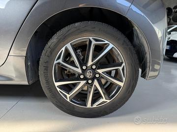 Climatizzatore automatico, Sedile guidatore regolabile in altezza, Volante in pelle, Piantone dello sterzo collassabile, Volante regolabile in altezza e profondità, Bracciolo anteriore con vano portaoggetti, Cassetto portaoggetti, Schienale posteriore abbattibile 60/40, Pomello del cambio rivestito in pelle, Battitacco, Protezione vano carico, Garanzia 3 anni o 100.000 km, Garanzia 5 anni o 100.000 km sulle componenti ibride, Kit Riparazione Pneumatici, Immobilizer (blocco elettronico motore), Chiusura centralizzata con radiocomando, Display multi-informazioni con schermo da 4,2" e tachimetro digitale binhocular, Display touchscreen da 7", Sistema multimediale Toyota Touch 3, 4 Altoparlanti, Comandi multifunzione al volante, Computer Di Bordo Multifunzione, Cerchi in lega da 16'' con pneumatici 195/55 R16, Maniglie in tinta con la carrozzeria, Retrovisori esterni in tinta, Spoiler posteriore, Tergilavalunotto posteriore, Fari a LED, Luci posteriori a LED "Light Guide", Fari fendinebbia a LED, Auto High Beam (AHB) - Abbaglianti Automatici, Sensore crepuscolare, Finiture interne in materiale "Soft Touch", Interni neri in tessuto, ABS, Airbag SRS centrale, 2 airbag SRS frontali, 2 airbag SRS laterali, Airbag SRS a tendina anteriore, Airbag SRS a tendina posteriore, Controllo elettronico della trazione (TRC), Luci d'emergenza attive, Controllo elettronico della stabilità (VSC), Sistema di monitoraggio pressione pneumatici (TPWS), Pre-Collision System (PCS) - Sistema Pre-Collisione con riconoscimento pedoni (diurno/notturno) e ciclisti, Assistenza alla frenata (BA), Ripartitore elettronico della frenata (EBD), Assistenza alla partenza in salita (HAC), Sistema di ritenuta ISOFIX, Disattivatore airbag frontale lato passeggero, Avvisatore acustico cinture di sicurezza anteriori e posteriori, Airbag passeggero, Airbag testa,