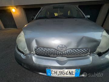 Vendo Toyota Yaris 1.0 benzina anno 2003. Auto funzionante e marciante, motore ok. Difetti: - Problema sospensione anteriore destra (da sistemare subito) - Gomma anteriore destra da cambiare (consumata) - Cofano ammaccato - Faro e paraurti leggermente fuori sede - Manca leva tergicristalli - Normali segni di usura interni ed esterni L’auto si accende e cammina ma necessita di lavori, venduta vista e piaciuta. Ideale per chi sa sistemarla o per ricambi. Prezzo: 700€ trattabili