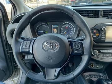 Luce Vano Bagagli, Sedile guidatore regolabile in altezza, Volante in pelle con inserti Piano Black, Piantone dello sterzo collassabile, Volante regolabile in altezza e profondità, Schienale posteriore abbattibile 60/40, Climatizzatore automatico bi-zona, Pulsante di avviamento "Push Start", Abitacolo indeformabile ad alta protezione, Energy Monitor, Fari anteriori Projector, Protezione vano carico, Strumentazione analogica (tachimetro, indicatore di potenza), Garanzia 3 anni o 100.000 km, Garanzia 5 anni o 100.000 km sulle componenti ibride, Kit Riparazione Pneumatici, Immobilizer (blocco elettronico motore), Chiusura centralizzata con radiocomando, Sistema multimediale Toyota Touch2 ("iPod Ready", display da 7", 6 altoparlanti, Bluetooth, USB), Display multi-informazioni TFT a colori da 4,2", Comandi multifunzione al volante (audio e Bluetooth), Computer Di Bordo Multifunzione, Cerchi in acciaio da 15" con pneumatici 175/65 R15, Griglia radiatore verniciata black, Maniglie in tinta con la carrozzeria, Retrovisori esterni regolabili elettricamente, riscaldati e in tinta, Tergilavalunotto posteriore, LED pack LED anteriori e posteriori con "Light guide", Luci posteriori a LED "Light Guide", Fari fendinebbia con cornice cromata, Dispositivo Follow Me Home, Luci diurne a LED "Light Guide", Finiture interne in materiale "Soft Touch", Finiture laterali black, Interni in tessuto, Poggiatesta anteriori attivi (sistema WIL), 7 airbag SRS (frontali, laterali, tendina anteriore e posteriore, ginocchia lato guida), Cerchi in lega da 15" (con pneumatici 175/65 R15),