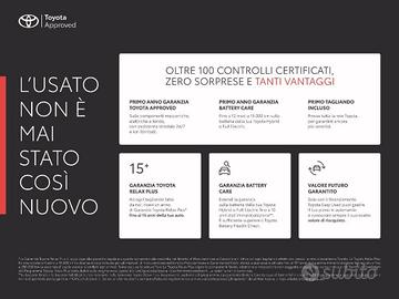 LA VETTURA E' COPERTA DA GARANZIA "TOYOTA APPROVED" CHE TI OFFRE LA SICUREZZA DI ACQUISTARE UN VEICOLO IBRIDO CERTIFICATO. Tutte le auto ibride certificate "Toyota Approved" includono: - garanzia di 12 mesi, con copertura completa anche per le componenti ibride - assistenza stradale 24/7 e chilometraggio illimitato. E' CONSIGLIATO UN CONTATTO TELEFONICO O VIA E-MAIL, PER VERIFICARE L'EFFETTIVA DISPONIBILITA' E CONFERMARVI LA SEDE IN CUI E' UBICATA LA VETTURA Tutte le nostre vetture usate: - hanno KM certificati: e' possibile visionare e provare la vettura con il vostro meccanico di fiducia prima dell'acquisto; - subiscono un accurato controllo meccanico presso la nostra officina; - sono sottoposte a sanificazione ed igienizzazione degli interni. Valutiamo il ritiro in permuta del vostro veicolo usato. In opzione, possibilità di finanziamento (salvo approvazione della finanziaria) e pacchetti assicurativi: - Furto/Incendio - Eventi naturali/Atti vandalici/Eventi sociopolitici - Cristalli - Collisione o minicollisione - Kasko o mini kasko La dotazione tecnica e gli optional potrebbero in alcuni casi differire dall'effettivo equipaggiamento della vettura. Si declina ogni responsabilità per eventuali involontarie incongruenze, che non rappresentano un impegno contrattuale. Ce ne scusiamo anticipatamente [Cod: 1065652-800] [Veicolo: 486657]