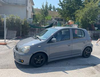 Vendo Toyota Yaris allestimento TS anno 2000 neopatentati in ottime condizioni completamente riverniciata ( spesi 2500 ? ) aria condizionata doppio air bag cerchi in lega con gomme 80% più altri quattro cerchi con gomme termiche volante in pelle TS autoradio circa 238000km meccanicamente perfetta, consumi bassissimi ,il motore non consuma un filo d'olio