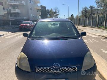 Marca: Toyota • Modello: Yaris (prima serie, versione restyling) • Anno di immatricolazione: 2001 Carrozzeria: Berlina a 5 porte (come visibile nelle foto laterali). • Colore: Blu scuro metallizzato. Si tratta del modello XP10, riconoscibile dai fari anteriori a "goccia" e dal logo Yaris sul portellone posteriore. Stato della carrozzeria: Sono presenti alcuni graffi superficiali e piccoli segni d'usura (visibili sulla fiancata e sul paraurti anteriore). • Fari: I fari anteriori appaiono leggermente opacizzati, un fenomeno comune per le auto di questa età, risolvibile con una lucidatura Revisione in scadenza a Novembre 2026 Formula vendita: Vista e piaciuta