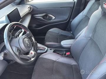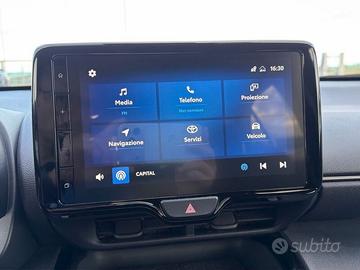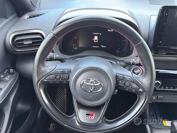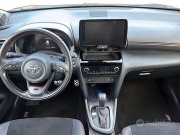 7 airbag SRS - ABS + EBD + BA - Accensione automatica luci di emergenza ARFHL - Alzacristalli elettrici anteriori e posteriori - Assistenza all'uscita sicura SEA - Assistenza alla partenza in salita (HAC) - Avvisatore acustico cinture di sicurezza anteriori e posteriori - Bagagliaio con doppio fondo - Barre longitudinali - Battitacco specifico con logo Yaris Cross GR Sport - Bracciolo anteriore - Cambio a variazione continua (E-CVT) - Cassetto portaoggetti - Cerchi in lega da 18" con pneumatici 215/50 R18 - Chiamata di emergenza E-call - Chiusura centralizzata con radiocomando - Cinture di sicurezza anteriori con pretensionatore e limitatore di forza - Climatizzatore automatico bi-zona - Comandi multifunzione al volante - Comfort Pack - Controllo elettronico della stabilità (VSC) e della trazione (TRC) - Digital cockpit con schermo a colori da 12,3" - Disattivatore airbag frontale lato passeggero - Fari anteriori a LED - Fari fendinebbia a LED - Fari posteriori High LED con indicatori di direzione sequenziali - Finiture cruscotto in materiale "Soft Touch" - Freno di stazionamento elettrico (EPB) - Freno di stazionamento elettronico con funzione Hold - Garanzia 3 anni o 100.000 km - Garanzia 5 anni o 100.000 km sulle componenti ibride - Griglia anteriore e diffusore posteriore sportivi - Illuminazione interna Ambient - Interni sportivi in pelle Ultrasuede con logo GR - Kit riparazione pneumatici - Luce abitacolo posteriore - Maniglie in tinta con la carrozzeria - Pedaliera sportiva in alluminio - Piantone dello sterzo collassabile - Purificatore d'aria Nanoe X - Retrovisori esterni regolabili elettricamente e riscaldabili - Retrovisori esterni ripiegabili elettricamente - Rilevamento presenza passeggeri sedili posteriori RSRS - Schienale posteriore abbattibile 40/20/40 - Sedili anteriori riscaldabili - Sensori pioggia e crepuscolare - Sistema audio a 6 altoparlanti - Sistema di monitoraggio pressione pneumatici