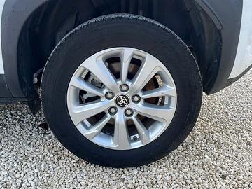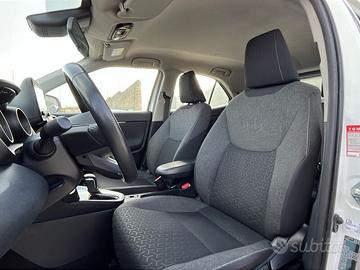 7 airbag SRS - ABS + EBD + BA - Alzacristalli elettrici anteriori e posteriori - Assistenza alla partenza in salita (HAC) - Avvisatore acustico cinture di sicurezza anteriori e posteriori - Barre longitudinali - Bracciolo anteriore - Cambio a variazione continua (E-CVT) - Cassetto portaoggetti - Cerchi in lega da 16" con pneumatici 205/65 R16 - Chiusura centralizzata con radiocomando - Cinture di sicurezza anteriori con pretensionatore e limitatore di forza - Climatizzatore automatico - Comandi multifunzione al volante - Controllo elettronico della stabilità (VSC) e della trazione (TRC) - Disattivazione airbag frontale lato passeggero - Display multi-informazioni a colori da 4,2" - Fari alogeni anteriori - Fari fendinebbia a LED - Fari posteriori Low LED - Finiture cruscotto in materiale "Soft Touch" - Freno di stazionamento elettrico (EPB) - Freno di stazionamento elettronico con funzione Hold - Garanzia 3 anni o 100.000 km - Garanzia 5 anni o 100.000 km sulle componenti ibride - Interni in tessuto - Kit riparazione pneumatici - Luci d'emergenza attive - Maniglie in tinta con la carrozzeria - Piantone dello sterzo collassabile - Retrovisori esterni regolabili elettricamente e riscaldabili - Schienale posteriore abbattibile 60/40 - Sensori pioggia e crepuscolare - Servosterzo elettrico - Sistema audio a 4 altoparlanti - Sistema di monitoraggio pressione pneumatici (TPWS) - Sistema di ritenuta ISOFIX - Sistema multimediale Toyota Touch 3 - Spoiler posteriore - Telecamera posteriore di assistenza al parcheggio - Toyota Safety Sense 2.5 - Vernice Monotone - Vernice Solid White - Vernice Urban Blue - Volante in pelle - Volante regolabile in altezza e profondità