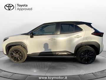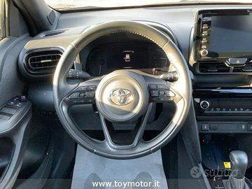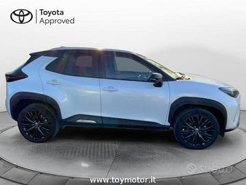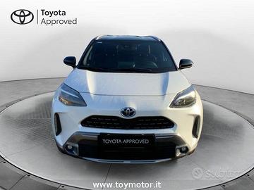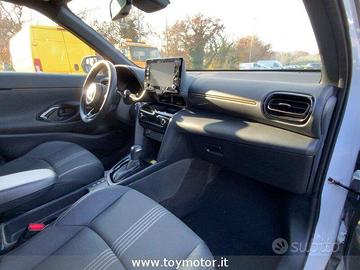 7 airbag SRS - ABS + EBD + BA - Alzacristalli elettrici anteriori e posteriori - Assistenza alla partenza in salita (HAC) - Avvisatore acustico cinture di sicurezza anteriori e posteriori - Barre longitudinali - Battitacco specifico con logo Yaris Cross - Bracciolo anteriore - Cambio a variazione continua (E-CVT) - Cassetto portaoggetti - Cerchi in lega da 18" - Chiusura centralizzata con radiocomando - Cinture di sicurezza anteriori con pretensionatore e limitatore di forza - Climatizzatore automatico bi-zona - Comandi multifunzione al volante - Comfort Pack - Controllo elettronico della stabilità (VSC) e della trazione (TRC) - Disattivazione airbag frontale lato passeggero - Displa