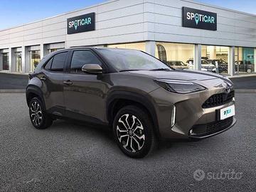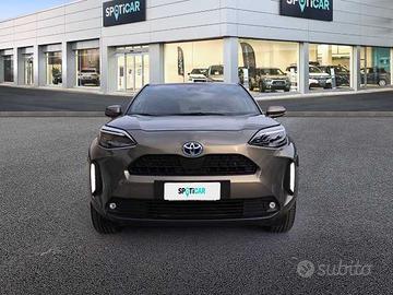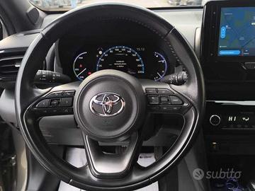 7 airbag SRS, ABS + EBD + BA, Alzacristalli elettrici anteriori e posteriori, Assistenza alla partenza in salita (HAC), Avvisatore acustico cinture di sicurezza anteriori e posteriori, Battitacco specifico con logo Yaris Cross, Cassetto portaoggetti, Comandi multifunzione al volante, Comfort Pack, Controllo elettronico della stabilità (VSC) e della trazione (TRC), Disattivazione airbag frontale lato passeggero, Display multi-informazioni con schermo a colori da 7", Fari posteriori High LED con indicatori di direzione sequenziali, Finiture cruscotto in materiale "Soft Touch", Freno di stazionamento elettrico (EPB), Freno di stazionamento elettronico con funzione Hold, Garanzia 3 anni o 100.000 km, Garanzia 5 anni o 100.000 km sulle componenti ibride, Illuminazione interna Ambient, Kit riparazione pneumatici, Luci d'emergenza attive, Maniglie in tinta con la carrozzeria, Piantone dello sterzo collassabile, Sensori pioggia e crepuscolare, Sistema di monitoraggio pressione pneumatici (TPWS), Sistema di ritenuta ISOFIX, Sistema multimediale Toyota Smart Connect:, Specchietto retrovisore interno elettrocromatico, Spoiler posteriore, Supporto lombare lato guida, Toyota Safety Sense 2.5, Vernice Monotone, Vetri posteriori oscurati, Volante in pelle, Wireless Charger - Caricabatterie ad induzione per smartphone, Sistema audio a 6 altoparlanti, Bracciolo anteriore, Cambio a variazione continua (E-CVT), Cerchi in lega da 18", Chiusura centralizzata con radiocomando, Climatizzatore automatico bi-zona, Fari anteriori a LED, Fari fendinebbia a LED, Interni in pelle e tessuto, Smart Entry & Push Start system, Cinture di sicurezza anteriori con pretensionatore e limitatore di forza, Retrovisori esterni regolabili elettricamente e riscaldabili, Retrovisori esterni ripiegabili elettricamente, Servosterzo elettrico, Telecamera posteriore di assistenza al parcheggio, Tetto panoramico, Vernice metallizzata, Volante regolabile in altezza e profondità