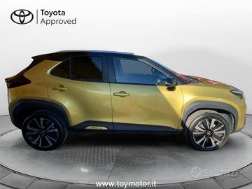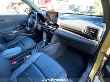 7 airbag SRS - ABS + EBD + BA - Alzacristalli elettrici anteriori e posteriori - Assistenza alla partenza in salita (HAC) - Avvisatore acustico cinture di sicurezza anteriori e posteriori - Barre longitudinali - Battitacco specifico con logo Yaris Cross - Bracciolo anteriore - Cambio a variazione continua (E-CVT) - Cassetto portaoggetti - Cerchi in lega da 18" - Chiusura centralizzata con radiocomando - Cinture di sicurezza anteriori con pretensionatore e limitatore di forza - Climatizzatore automatico bi-zona - Comandi multifunzione al volante - Comfort Pack - Controllo elettronico della stabilità (VSC) e della trazione (TRC) - Disattivazione airbag frontale lato passeggero -