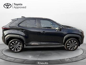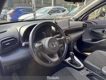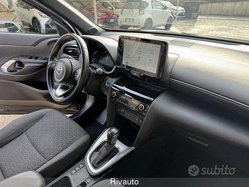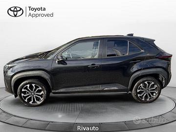 7 airbag SRS - ABS + EBD + BA - Alzacristalli elettrici anteriori e posteriori - Assistenza alla partenza in salita (HAC) - Avvisatore acustico cinture di sicurezza anteriori e posteriori - Barre longitudinali - Battitacco specifico con logo Yaris Cross - Bracciolo anteriore - Cambio a variazione continua (E-CVT) - Cassetto portaoggetti - Cerchi in lega da 17" con pneumatici 215/55 R17 - Chiusura centralizzata con radiocomando - Cinture di sicurezza anteriori con pretensionatore e limitatore di forza - Climatizzatore automatico - Comandi multifunzione al volante - Controllo elettronico della stabilità (VSC) e della trazione (TRC) - Disattivazione airbag frontale lato passeggero - Display multi-informazioni con schermo a colori da 7" - Fari anteriori a LED - Fari fendinebbia a LED - Fari posteriori High LED con indicatori di direzione sequenziali - Finiture cruscotto in materiale "Soft Touch" - Freno di stazionamento elettrico (EPB) - Freno di stazionamento elettronico