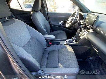 7 airbag SRS - ABS + EBD + BA - Alzacristalli elettrici anteriori e posteriori - Assistenza alla partenza in salita (HAC) - Avvisatore acustico cinture di sicurezza anteriori e posteriori - Barre longitudinali - Battitacco specifico con logo Yaris Cross - Bracciolo anteriore - Cambio a variazione continua (E-CVT) - Cassetto portaoggetti - Cerchi in lega da 17" con pneumatici 215/55 R17 - Chiusura centralizzata con radiocomando - Cinture di sicurezza anteriori con pretensionatore e limitatore di forza - Climatizzatore automatico - Comandi multifunzione al volante - Controllo elettronico della