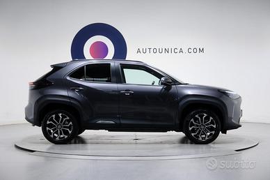 TOYOTA Yaris Cross 1.5 Hybrid 5PORTE E-CVT Trend è un SUV compatto che combina efficienza, sicurezza e tecnologia all'avanguardia, perfetto per chi cerca una guida sicura e confortevole in città e fuoriporta. Dotata di sistemi avanzati come ABS, ESP, controllo trazione, airbag multipli, Isofix e riconoscimento dei segnali stradali, garantisce protezione completa anche ai neopatentati.Gli interni, ergonomici e curati, includono volante multifunzione, bracciolo, touch screen, sistema audio con USB, Bluetooth e vivavoce, climatizzatore automatico e boardcomputer, offrendo comfort e connettività in ogni situazione. Il cruise control, il controllo elettronico della corsia e la telecamera per parcheggio assistito completano l'esperienza di guida.Esteticamente elegante con cerchi in lega, fari full-LED, fendinebbia, luci diurne e sensori di parcheggio anteriori e posteriori, la Yaris Cross Trend in