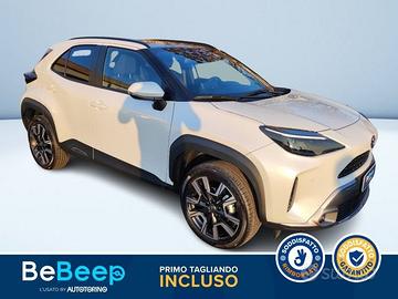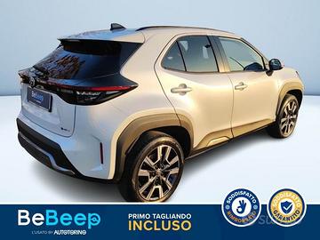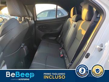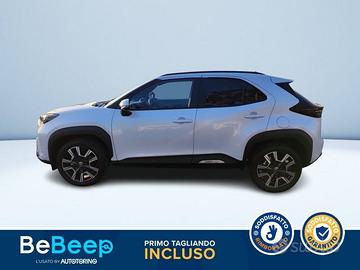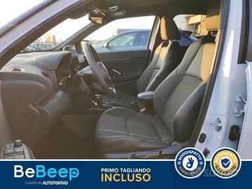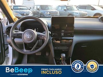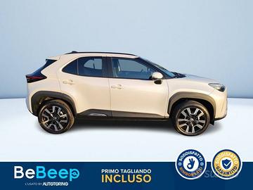 Abbaglianti automatici (AHB), Accensione automatica luci di emergenza ARFHL, Aggiornamenti (OTA), Airbag SRS centrale, Airbag SRS frontali, Airbag SRS laterali, Airbag SRS tendina anteriore, Airbag SRS tendina posteriore, Alzacristalli elettrici anteriori e posteriori, Assistenza alla frenata (BA), Assistenza alla partenza in salita (HAC), Assistenza alla sterzata di emergenza (ESA), Assistenza proattiva alla guida (PDA), Avvisatore acustico cinture di sicurezza anteriori e posteriori, Avviso di cambio corsia con controllo dello sterzo (LDA con SC), Avviso di rilevamento della stanchezza (DAA), Bagagliaio con doppio fondo divisibile, Barre Longitudinali, Battitacco specifico con logo Yaris Cross, Bracciolo anteriore, Cassetto portaoggetti, Cerchi in lega da 18"" con