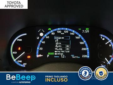 La vettura è completa nella dotazione optional di 1.5 VVT-i Full Hybrid, 4 freni a disco, Airbag SRS a tendina anteriore, Airbag SRS a tendina posteriore, Airbag SRS centrale, Airbag SRS frontale conducente, Airbag SRS frontale passeggero, Airbag SRS laterale conducente, Airbag SRS laterale passeggero, Alzacristalli elettrici anteriori e posteriori, Assistenza alla frenata (BA), Assistenza alla partenza in salita (HAC), Auto High Beam (AHB) - Abbaglianti Automatici, Avvisatore acustico cinture di sicurezza anteriori e posteriori, Barre Longitudinali, Battitacco specifico con logo, Battitacco specifico con logo GR, Bracciolo anteriore, Cassetto portaoggetti, Cerchi in lega da 17"" con pneumatici 215/55 R17, Chiusura centralizzata con radiocomando, Cinture di sicurezza ant. con pretensionatore e limitatore di forza, Climatizzatore