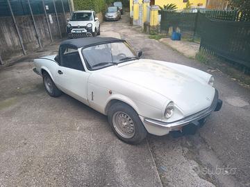 Vendo Triumph Spitfire 1500 anno 1979 per cambio auto. La carrozzeria è in ottime condizioni, il motore è impeccabile e neanche soggetto al tipico surriscaldamento delle Spitfire. Negli ultimi due anni sono stati effettuati svariati lavori di manutenzione e perfezionamento tra cui sostituzione vecchi fusibili in vetro con i moderni fusibili a lama inseriti internamente all' auto (diventando così fuori rischio di incendio in caso di pioggia), cambio pompa acqua, cinghia, albero a camme, barra stabilizzatrice, motorino vetri, galleggiante benzina, filtro olio, cavi candele, smontaggio e pulizia impianto raffreddamento, carburazione ed altro ancora. Disponibile ad ogni prova su strada. L' auto è già revisionata.
