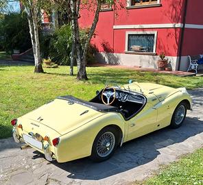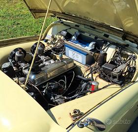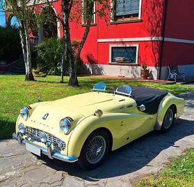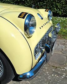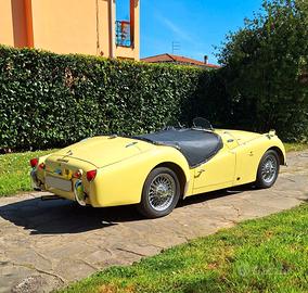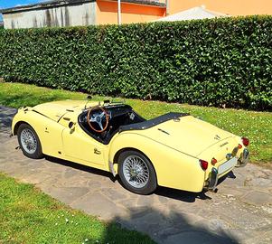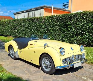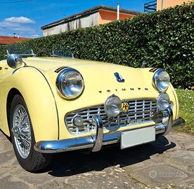 MCM presenta MERAVIGLIOSA Triumph TR3 A - Anno 1959 - Targa Oro ASI - Fiches CSAI - Colore Originale Prime Rose Yellow - Conservata Splendidamente - Meccanica perfetta - Cambio revisionato - Frizione - Pompa e ripetitore - Ammort. Koni - Doppia pompa elettrica - Elettroventola aggiuntiva con modifica convogliatore aria - AeroScreen - Volante Motolita - Tonneau Cover oltre a capote, parabrezza e vetri laterali con windscreen - fendinebbia originali Lucas e barra accessori - Numerose fatture a corredo - Stesso proprietario da 26 anni - Ha partecipato a numerose gare di regolarità con nota Squadra Corse - BELLISSIMA - Numerose foto e video disponibili Visibile su appuntamento a Montecatini Terme Per info 0039 328 2577 544 anche Whatsapp GRAZIE