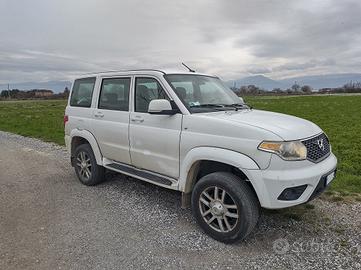 Uaz Patriot in allestimento privilege, uniproprietario. La macchina ha il motore zmz 409 a benzina/gpl, con potenza di 134,5cv ed è munita di gancio traino. Ha all'attivo 57000km ed è in ottimo stato di meccanica e carrozzeria. Gomme sostituite 1000km fa (bridgestone dueler at2). Prezzo trattabile.