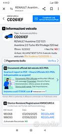 Renault - Matra AVANTIME Dynamique 2.0 -16 V Turbo Benzina 163 CV del 10/2002 - Colore Blu Iliade Cod. 549 con Km 189400 Iscritta ASI con CRS
