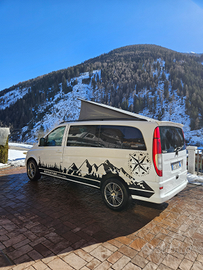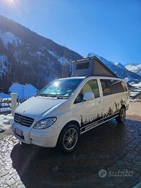 Vendo Mercedes benz Vito W639 mini Marco polo camperizzato del 2005 con all attivo 320500 km, immatricolato come vettura,motore a cascata di ingranaggi, quindi un motore eterno, fari full led e anche nell abitacolo dispone di due file di led sul laterale e anche un altra nel baule, al suo interno ci sono tutti i finestrini allestiti con delle tendine, il furgone predispone di una tenda a soffietto istallata sul tetto e un cucinino con 2 fuochi a gas e un lavabo(da adattare sotto il mobile taniche nuove e riserva del gas per accendere i fuochi, non disponibil)