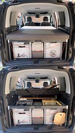 Volkswagen Caddy Style 2.0 DSG 122CV diesel automatico Furgone versatile con dotazioni moderne di alto livello, camperizzato e in perfetto stato, pronto a partire per avventura e vacanze. La camperizzazione è stata tutta costruita su misura, meglio della versione California originale! Immatricolazione: 10/2021, Chilometraggio: 108.000 km Motore: Diesel, automatico, 1.968 cc, 90 kW/122 CV, Euro 6 Revisione valida fino a 10/2027 Android Auto, Apple CarPlay, navigatore satellitare, schermo multifunzione digitale, volante multifunzione, ricarica cellulare wireless. Climatizzatore automatico 2 zone, porte scorrevoli destra e sinistra, sedile passeggero ribaltabile, sedili posteriori ribaltabili e rimovibili, specchietti laterali elettrici, volante in pelle, tappetini in gomma. Adaptive Cruise Control, controllo elettronico della corsia, limitatore di velocità, telecamera parcheggio Fari full-LED, abbaglianti automatici Cerchi in lega neri 17", pneumatici quattro stagioni, filtro aria sportivo K&N, sospensioni rialzate, piastra paramotore in metallo, portapacchi Rolling Space in acciaio, ruota di scorta intera con cerchio in lega Camperizzazione: presa di corrente esterna con interruttore differenziale magnetotermico, letto in alluminio 175x120cm, frigorifero a compressore Dometic, modulo lavandino con serbatoio acqua, batteria Ecoflow River 2Pro da 768Wh, griglie di ventilazione originali Accessori extra: è possibile includere nella vendita anche il portabici Menabo Shadow Caddy e la doccia solare da tetto Yakima Roadshower da 15l Il prezzo esposto nell'annuncio si riferisce al mezzo senza camperizzazione, per l'aggiunta della camperizzazione e degli accessori extra vanno aggiunti 2500€ al prezzo indicato. Vendo a malincuore per passaggio ad auto aziendale, mi piacerebbe venderlo come pacchetto completo, compreso di camperizzazione e accessori, a qualcuno che lo possa apprezzare.