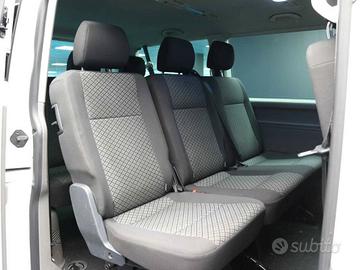 Allestimento TRENDLINE - 9 posti - N0E Tessuto Bricks Nero Titanio - 3L1 Regolazione manuale in altezza del sedile anteriore sinistro - QL5 Vetro scuro nella parte posteriore dell'abitacolo (Venus 35 / Privacy), vetro atermico anteriore (verde) - ZM8 Pacchetto 9 posti 3+3+3 - ZZ9 Clima "Climatronic" con regolazione temperatura 3 zone, filtro antiallergico, riscaldamento supplementare e sottocielo con bocchette clima - Vernice - Di Serie: - 2 interfacce USB (tipo C) nella plancia - App-Connect - Climatizzazione nella cabina di guida con regolazione elettrica e 2° riscaldatore con ventilatore vano passeggeri - Copricerchi per cerchi da 16" - Divano 2 posti, a sinistra, con appoggiabraccia lato corridoio - Divano 3 posti doppiamente ribaltabile - Finestrino laterale sinistro fisso nel vano di carico/vano passeggeri - Finestrino scorrevole destro nel vano passeggeri - Illuminazione della pedana di salita, porta/e scorrevole/i - Illuminazione interna con tecnica a LED nel vano passeggeri/vano di carico - Indicatore multifunzioni "Plus" con display bianco-nero - Occhielli per l'ancoraggio del carico - Porta scorrevole destra nel vano di carico/vano passeggeri - Radio "Composition Color" con touchscreen a colori da 6,5" - Ricezione Radio Digitale DAB+ - Riscaldatore ausiliario - Rivestimento in gomma per il pavimento del vano passeggeri/vano di carico - Rivestimento in gomma per il pavimento della cabina - Ruota di scorta di dimensioni normali in acciaio - Specchietti retrovisivi esterni regolabili elettricamente, riscaldabili separatamente - Specchietto retrovisore interno di sicurezza schermabile - Supporto lombare regolabile manualmente per schienale sedile