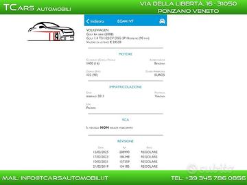 Ci trovi a Ponzano Veneto in via della Libertà 16 TCARS. T-CARS: Andrea: 3 4 5 7 8 6 0 8 5 6 Aron: 3 9 2 4 0 4 7 5 6 4 Anna: 3 3 1 3 6 0 0 4 2 2 Auto in ottime condizioni generali POSSIBILE ATTIVAZIONE DI GARANZIA 3 ANNI TOP VALIDA IN TUTTO IL TERRITORIO EUROPEO Anno: 02/2011 Modello: GOLF VI SERIE HIGHLINE Cilindrata: 1.4 TSI - 90 KW - 122 CV Cambio: AUTOMATICO DSG Alimentazione: BENZINA Classe ambientale: EURO 5 KM ATTUALI: 222.000 Revisione valida fino: 02/2027 Distribuzione: CATENA Nessun problema di carrozzeria. Nessun problema di meccanica. Passaggio di proprietà in agenzia di fiducia. No perditempo. Massima serietà. Garanzia 12 mesi FULL con un contributo Telefona sempre per un appuntamento, per verificare la disponibilità della vettura e per confermare tutte le caratteristiche pubblicate nella descrizione. TEST DRIVE SU APPUNTAMENTO. NOTA BENE: TUTTE LE INFORMAZIONI DESCRITTE POSSONO ESSERE SOGGETTE A ERRORI E NON COMPORTANO IN ALCUN MODO OBBLIGO CONTRATTUALE. VERIFICA SEMPRE TUTTI I DATI. DAL LUNEDI AL VENERDI: 08:45 - 12:15 / 15:00 - 19:00 SABATO: 09:00 - 12:00 / 15:00 - 18:00 DOMENICA: CHIUSO